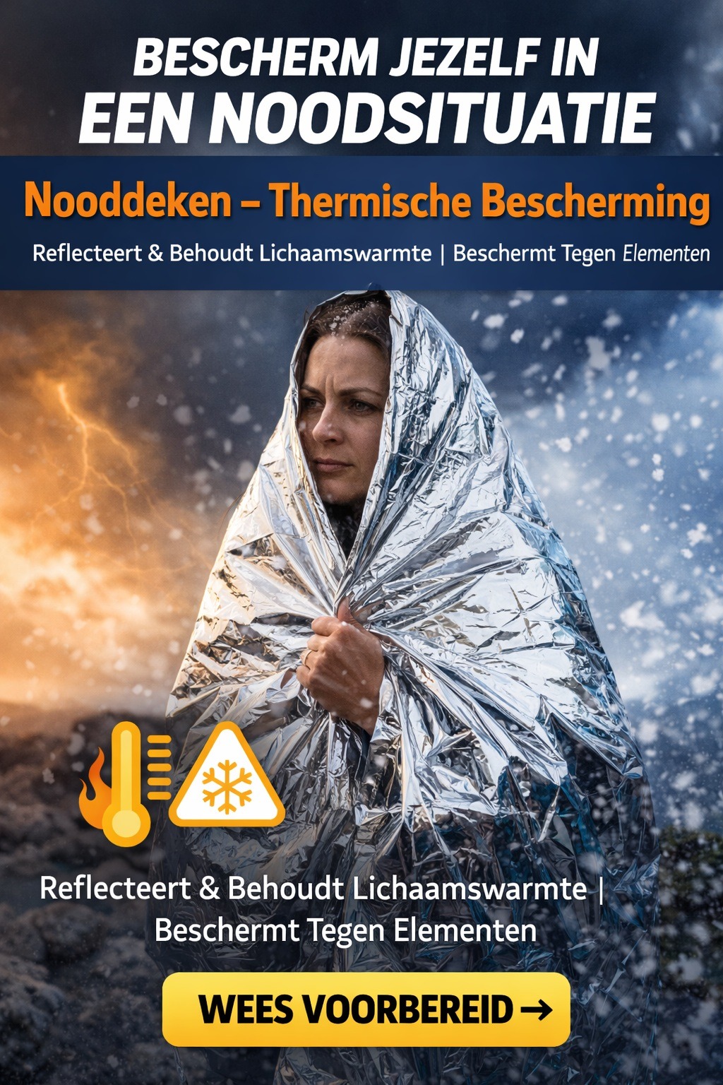 De NoodWise warmtedeken is een essentieel hulpmiddel om lichaamswarmte vast te houden tijdens noodsituaties, koude omstandigheden of stroomuitval. De thermische deken is gemaakt van lichtgewicht, isolerend materiaal dat helpt om warmteverlies te beperken en bescherming biedt tegen kou en wind.